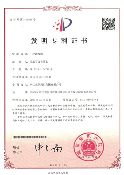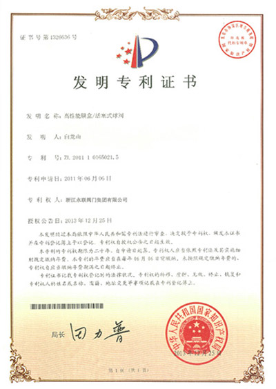 发明专利证书-一种带有控制驱动机构的自控球阀