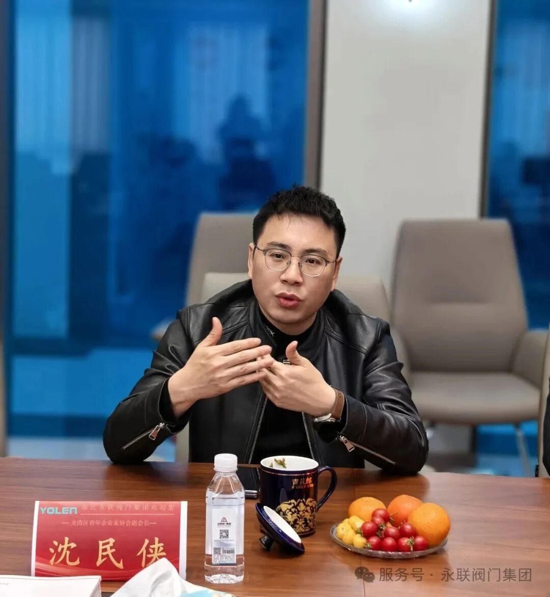 随后双方举行座谈会。韩晓书记充分肯定永联阀门集团作为区内重点制造企业的成绩与区域经济贡献,指出走访旨在加强青年企业家联动,搭建学习互鉴、资源共享、合作共赢平台,鼓励青年企业家把握机遇、弘扬精神、担当作为,为龙湾高质量发展注入青春动能。